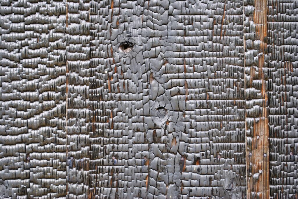 木材の特徴:太い木材であれば燃え始めると黒く炭になって中心部まで燃えるのは時間がかかる特徴があります。